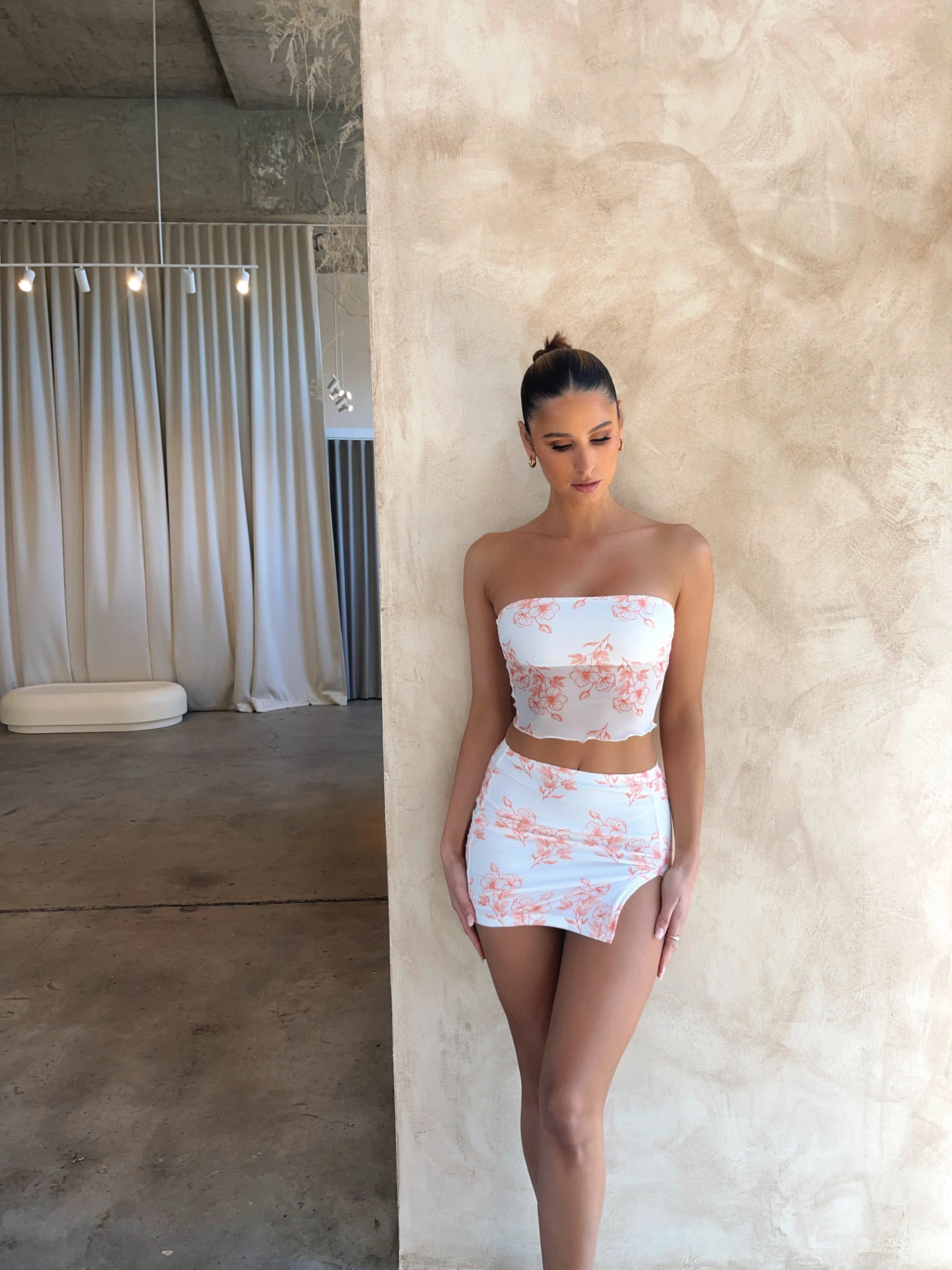 Sweet and sexy. Our Kara Mini Skirt is the ultimate vacay outfit. This exclusive mesh printed mini skirt is lined mesh with a side split for the ultimate comfort. This outfit is perfect for a Sunday brunch with the girls. Style with our matching Kara Mesh Crop Top and minimal heels to complete the look.